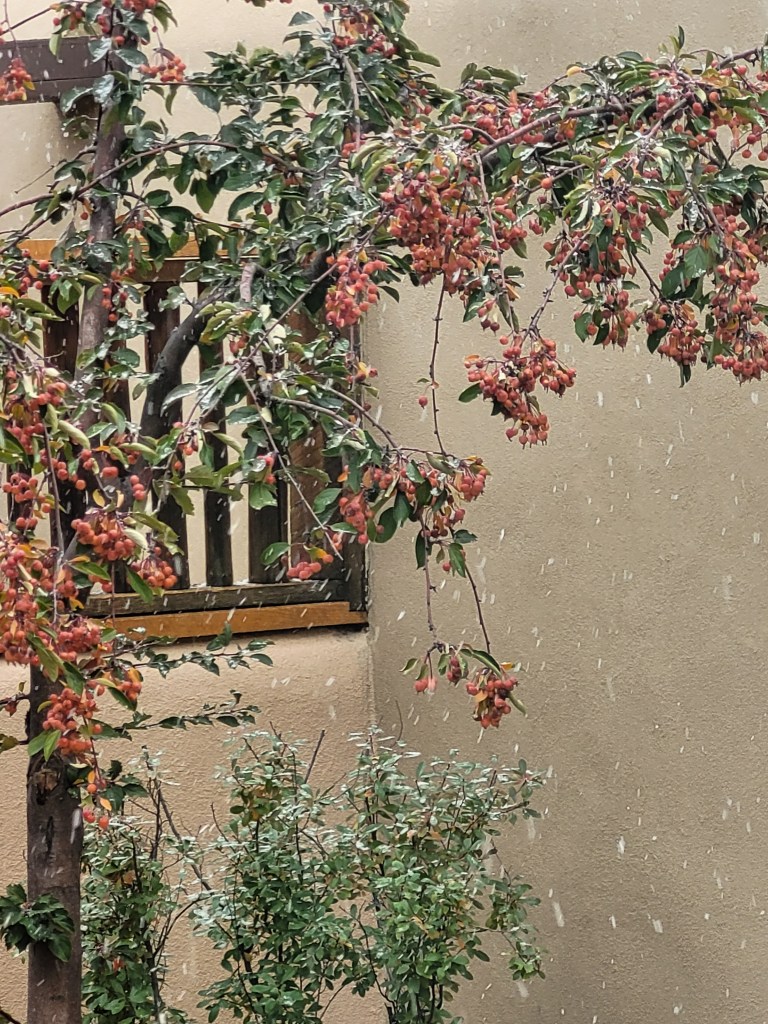 Because the days are still too hot: last year’s first snow, falling in my back yard.
